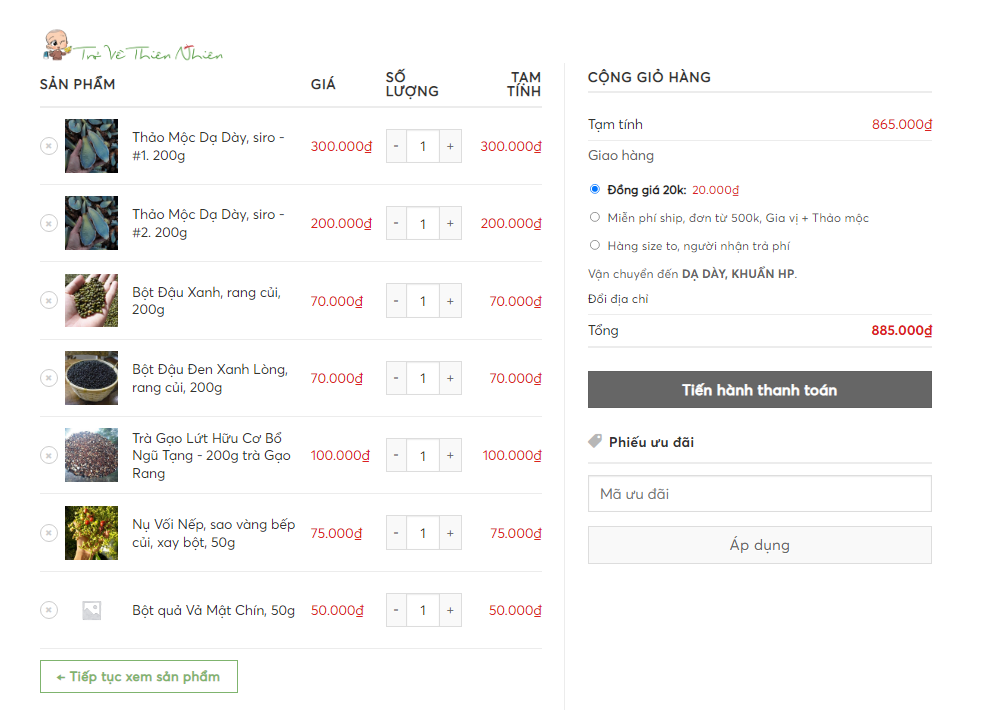 Chưa có sản phẩm trong giỏ hàng.